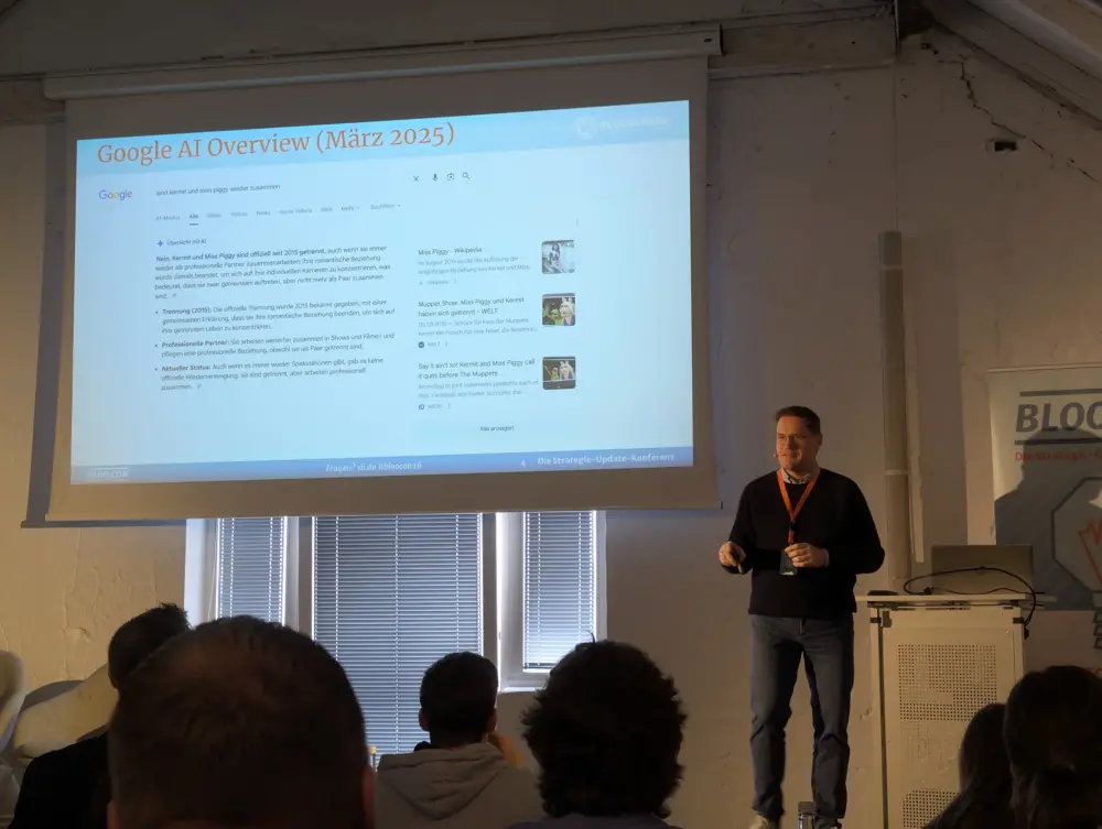 Markus Hövener zeigte uns wie jedes Jahr die neuesten Trends im Bereich Suchmaschinenoptimierung. Die Prognose: Ein möglicher CTR-Verlust von 30–50 % bei klassischen organischen Ergebnissen. Wie reagieren wir darauf? Mit „Chunking“. Inhalte müssen in präzise Abschnitte mit klaren H2-Überschriften und direkten Antworten zerlegt werden, um für die KI zitierfähig zu sein (Bullet Points mag die KI hier weniger!). Markus stellte zudem das Konzept der „Grounding Page“-Seiten vor, die speziell als Faktenlieferanten für die KI dienen, ähnlich wie bei modernen „Über uns“-Seiten.